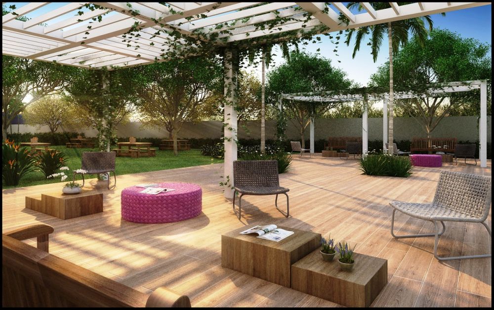 Praças de leitura sob pérgolas