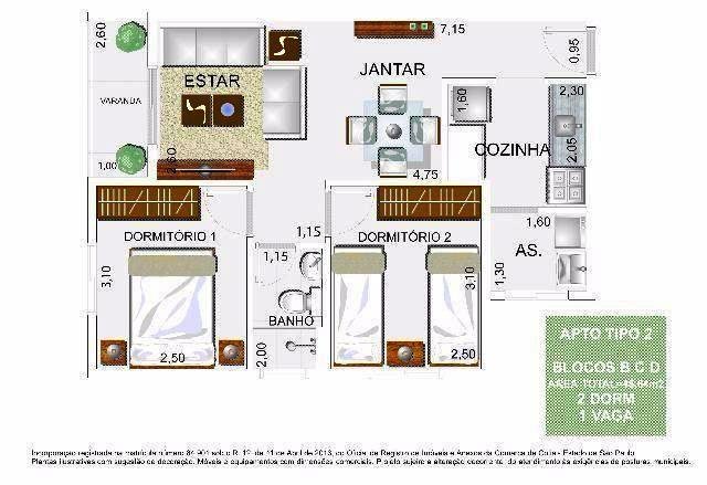 02 dorm à partir de 229.000,00 - 48,64m² - Valor com o piso