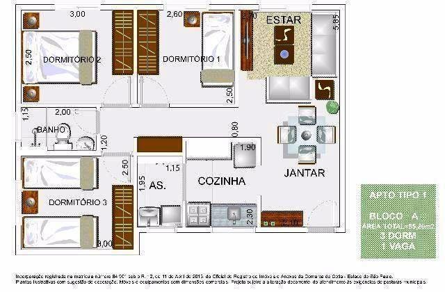 03 dorm à partir de 249.000,00 - 55,20m² - Valor com e sem o piso
