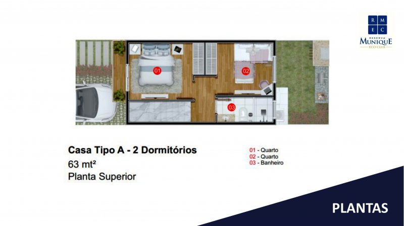 Casas tipo A - 2 dorms 60 mts Área privativa com 1 vaga de garagem