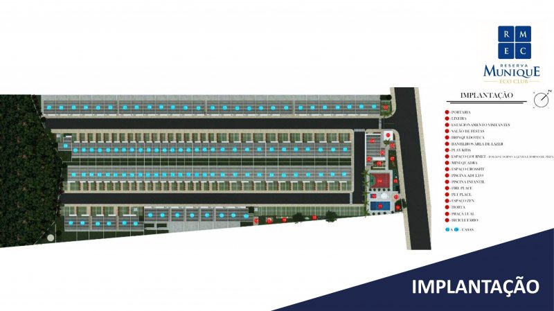 O empreendimento residencial Munique Eco Clube contará com 100 casas de 3