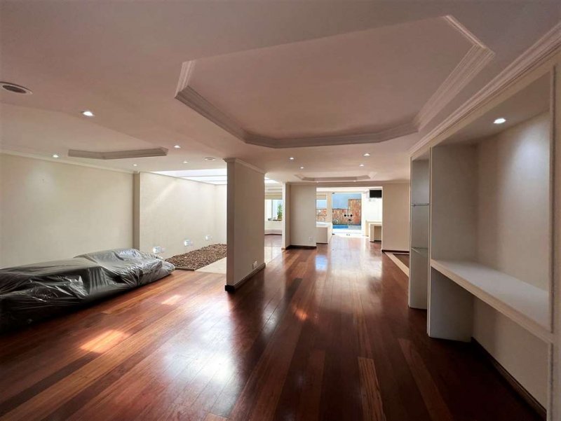 - Living para 4 ambientes, com lareira, jardim de inverno e grande claraboia.