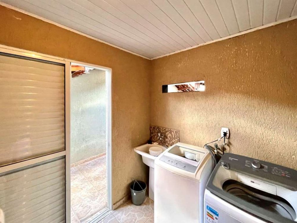 • Área de serviço aberta ensolarada e lavanderia fechada com tanque.