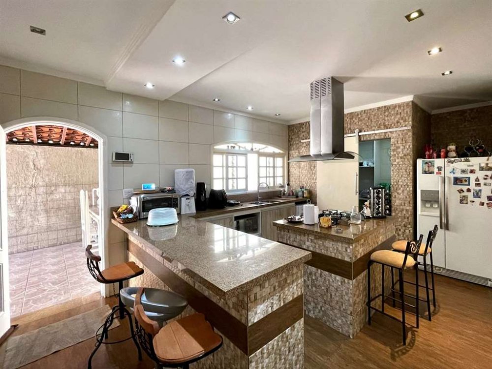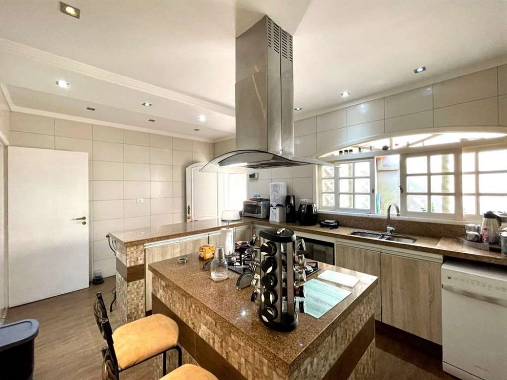 • Copa cozinha planejada integrada à garagem/ varanda, bancada de granito em L , 2 cubas inox, gabinetes, ilha com balcão, fogão cooktop Brastemp Fischer 5 bocas, coifa inox Cadence e ótima despensa.