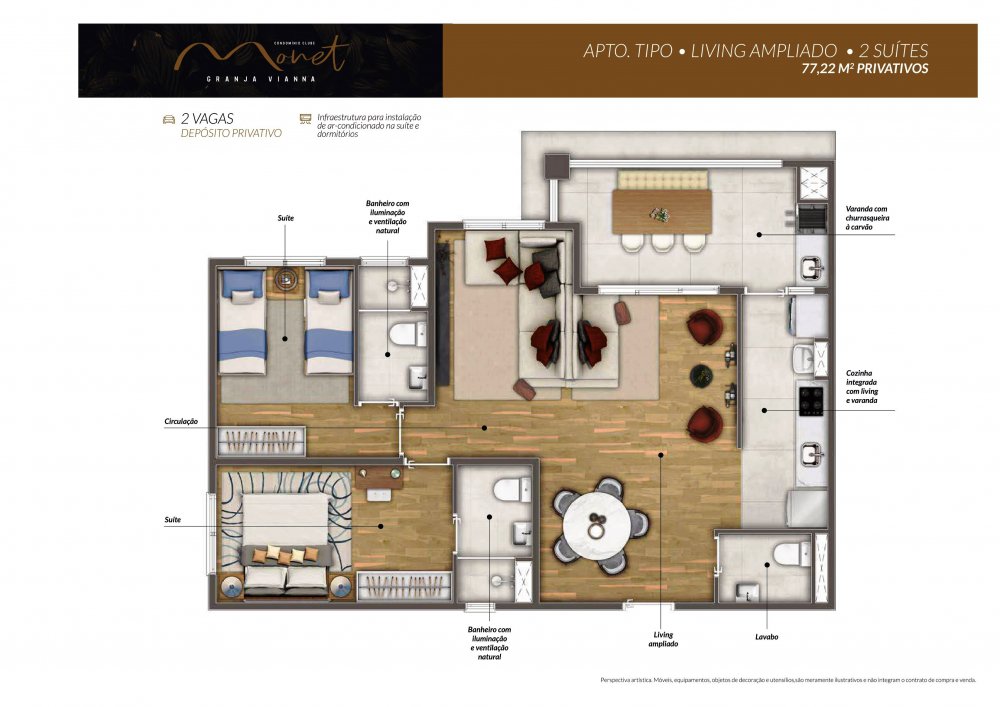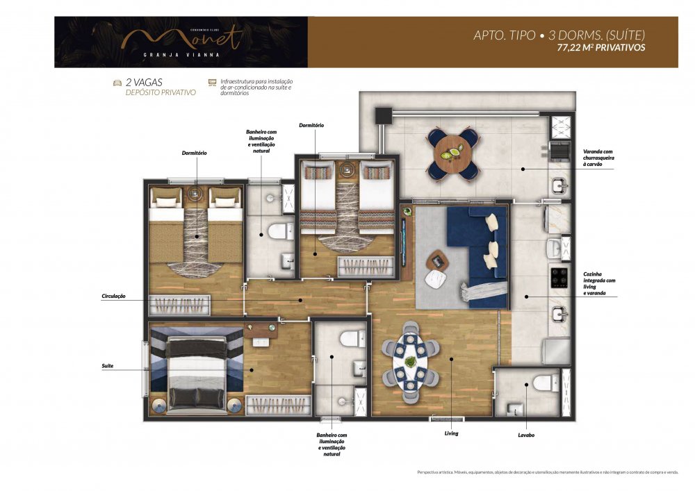 Metragens (Aptos. tipo): 77m² a 80m² privativos