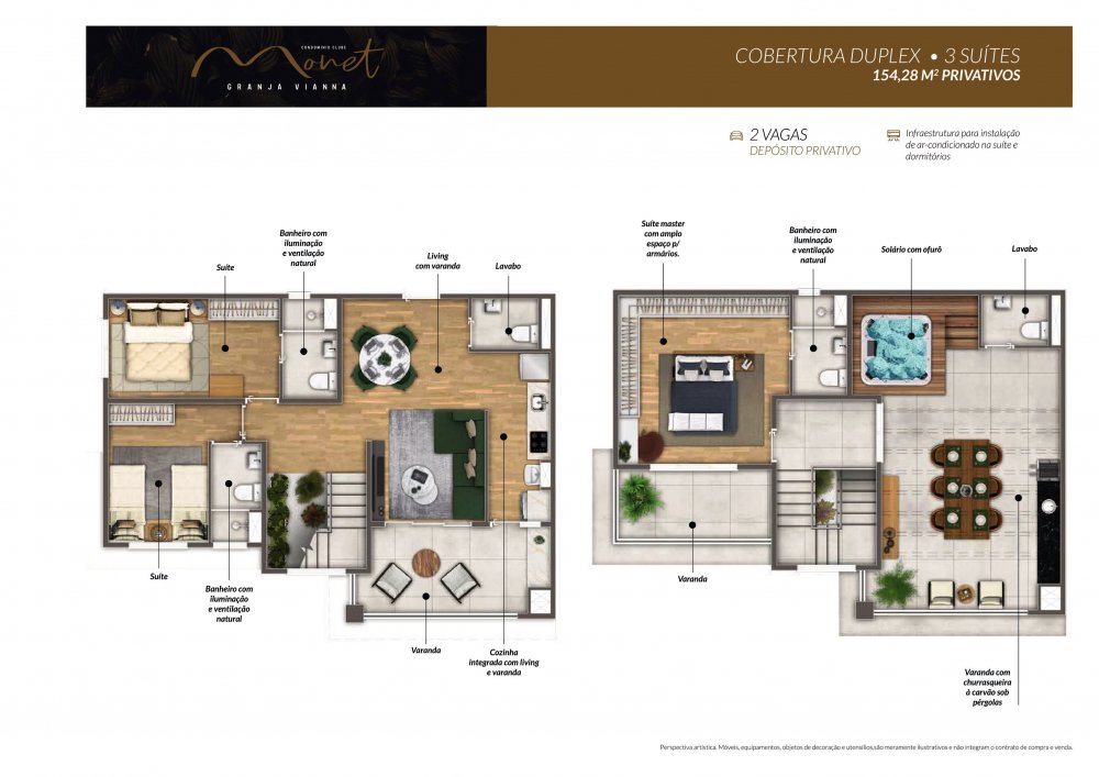 Cobertura duplex: 154,28m² privativos