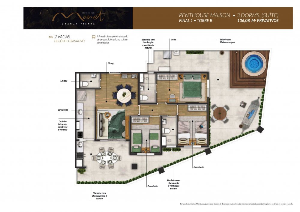 Penthouse Maison: 110m² a 136m² privativos