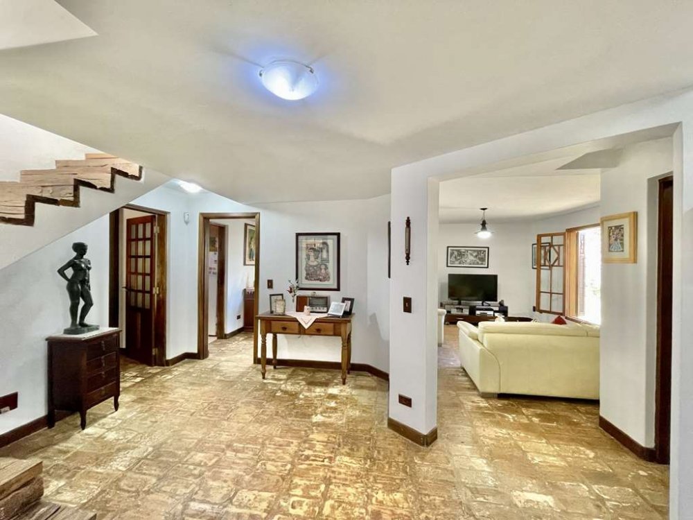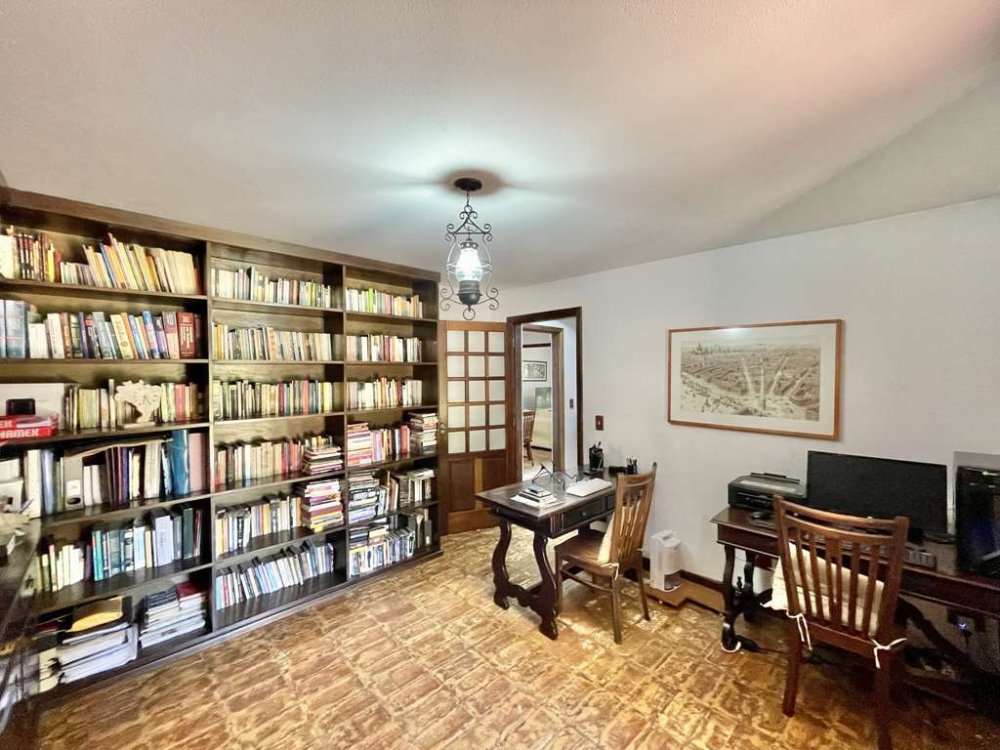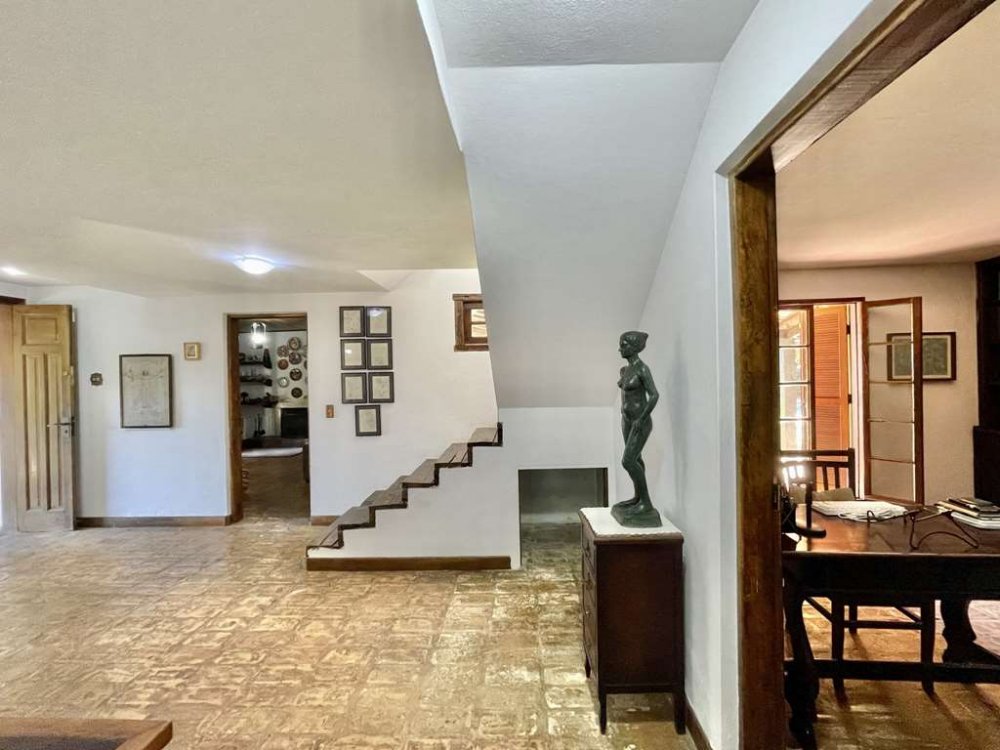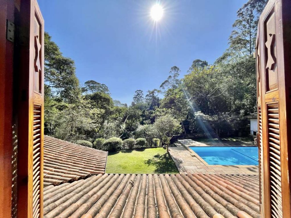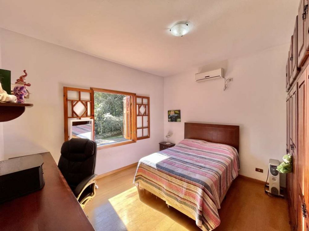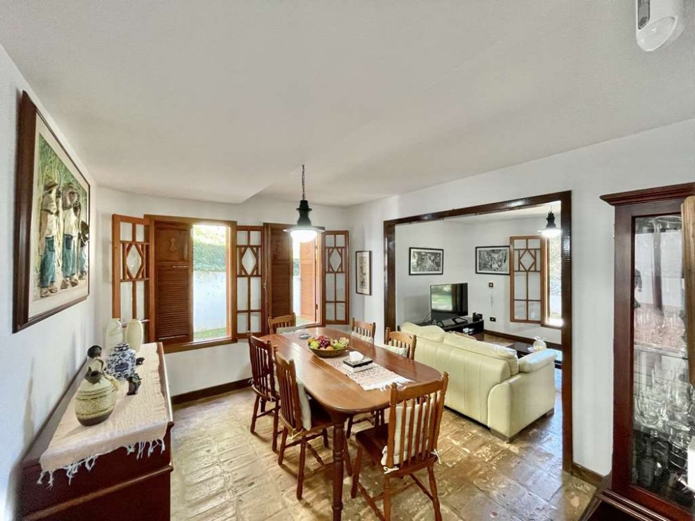 - Sala íntima com lareira, estantes, armários e gavetas em madeira maciça. Ideal para TV, biblioteca e música. Voltada para a varanda, jardim e piscina.