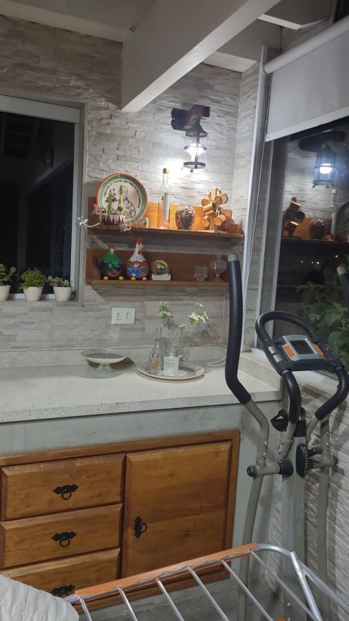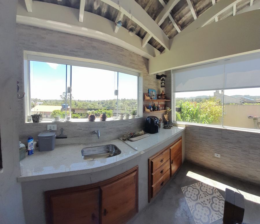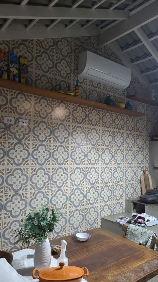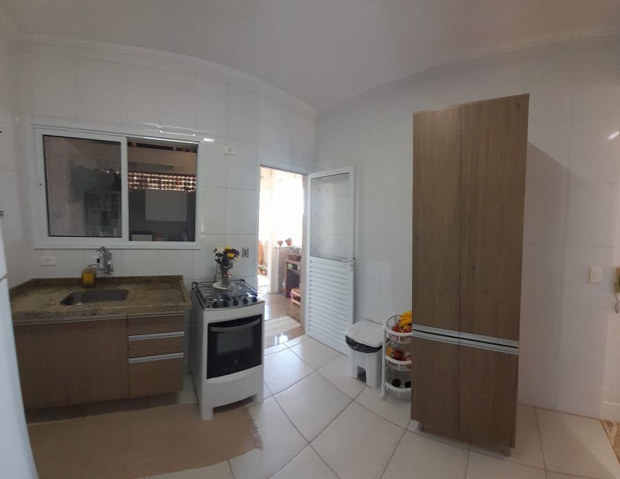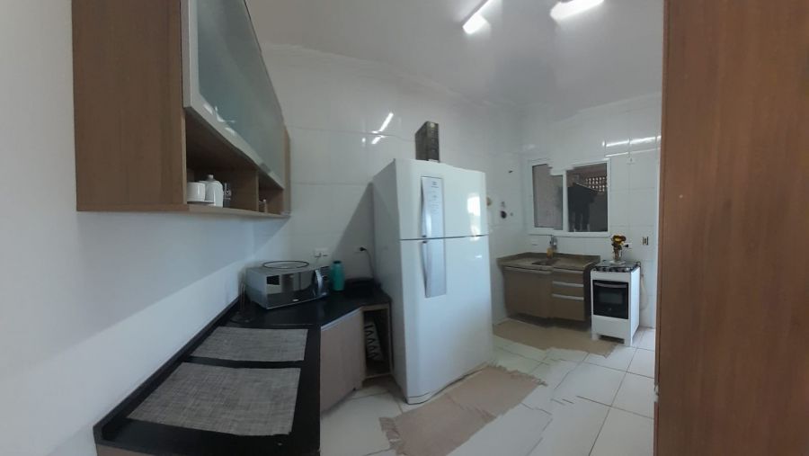 A cozinha foi ampliada, proporcionando um espaço maior para suas atividades culinárias, equipada com sistema de ar condicionado e persianas, garantindo conforto e praticidade.