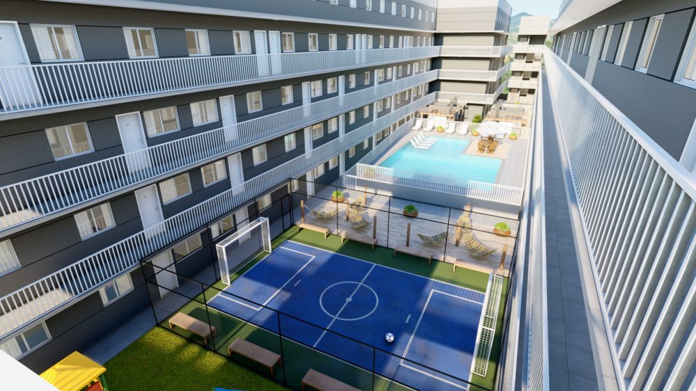 O condomínio proporciona qualidade de vida com ambientes bem projetados e
